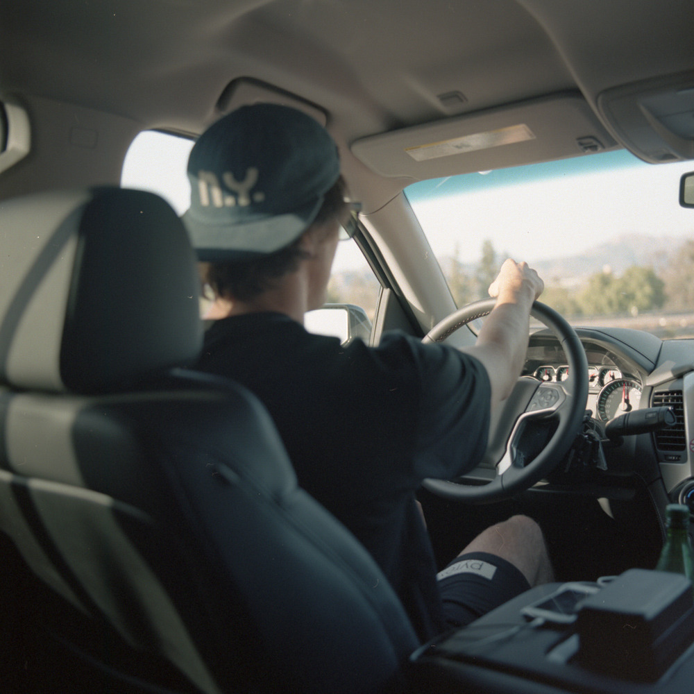 Jordan driving through the desert somewhere in CA